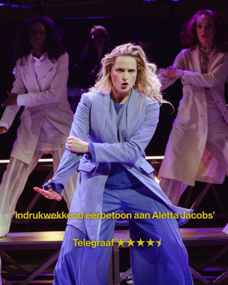 Aletta de musical, gezien 18 maart 2026 (als try-out) in het DeLaMar en 17 april 2026 in Schouwburg Amstelveen. Script Nathan Vecht (ook liedteksten, met Sjaan Duinhoven) en Maud Wiemeijer, muziek Sjaan Duinhoven, Wilko Sterke en Jeroen Sleyfer, regie Daria Bukvić, choreografie Daan Wijnands, muzikale leiding en bandleider Simone Kessen, decor Marloes van der Hoek en Wikke van Houwelingen, kostuums Dymph Boss, licht Yuri Schreuders, spel Desi van Oeveren in de titelrol en verder o.a. Gaia Aikman, Jacob de Groot, Eva van der Gucht en Kees Boot, scènefoto’s Juliette de Groot. Een productie van Oostpool Theater en TEC Entertainment. Op tournee t/m 14 juni, waaronder van 29 april t/m 10 mei in het DeLaMar in Amsterdam. Meer inlichtingen en kaarten: www.alettademusical.nl