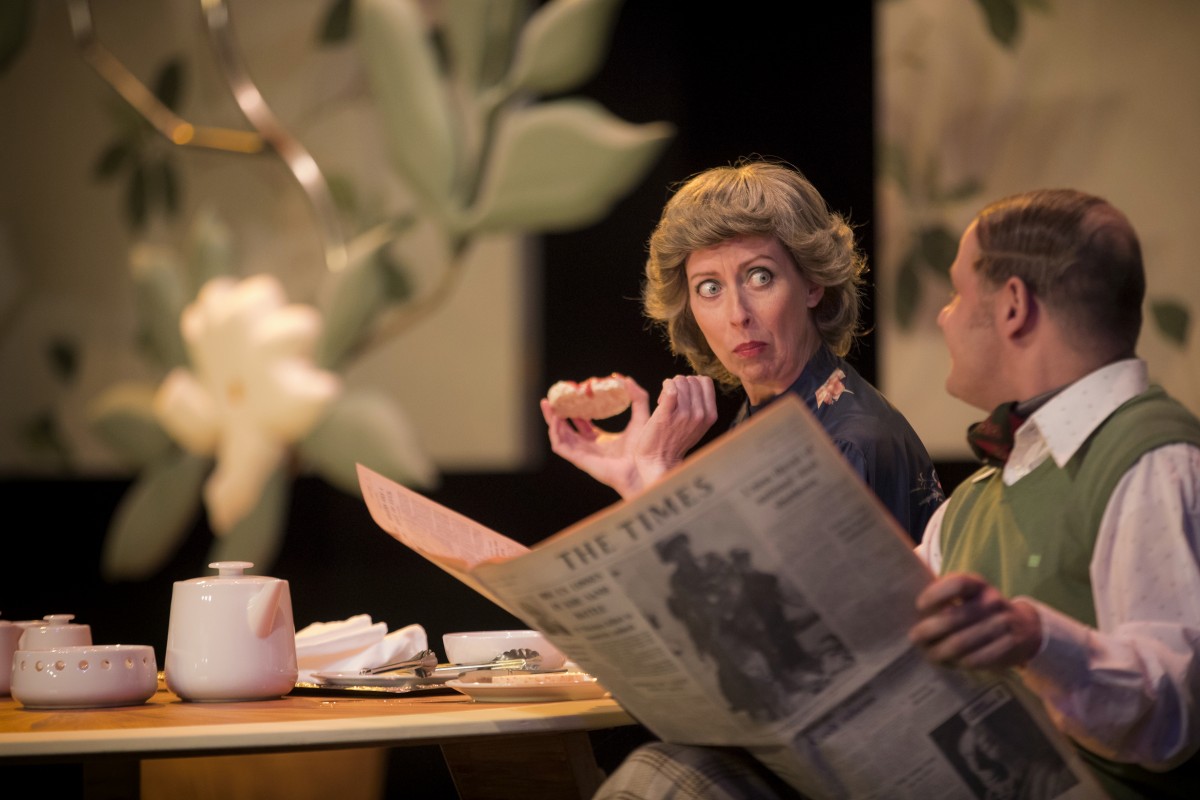 Slippers, gezien 20-4-2017 in het DeLaMar Theater Amsterdam, aldaar t/m 7 juni en daarna een korte tournee t/m 19 juni. Tekst Alan Ayckbourn, vertaling Jurrian van Dongen, spel Plien van Bennekom, Bianca Krijgsman, Peter van de Witte en Bas Hoeflaak, regie Gijs de Lange, decor Edwin Kolpa, kostuums Arno Bremers, producent Inge Bos. Zie: www.bostheaterproucties.nl of www.delamar.nl Foto’s Raymond van Olphen