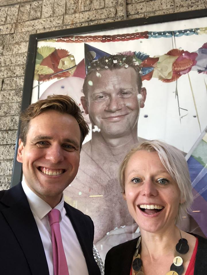 Amstelveense wethouders Marijn van Ballegooijen en Floor Gordon openden de expositie van Jan van Breda in de openlucht Keizer Karel Galerie onder de A9 in Amstelveen (foto Jeanette van Heijningen)