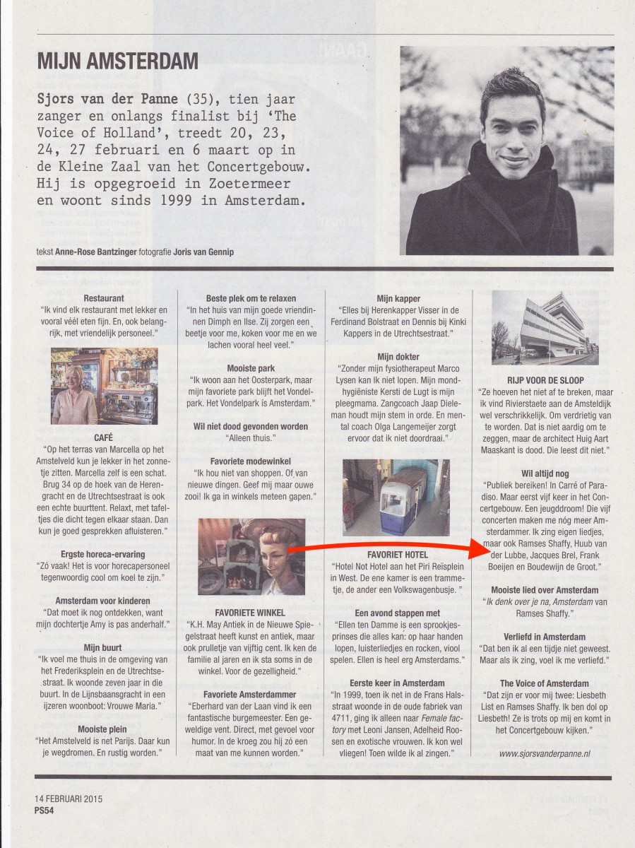 Mijn Amsterdam met Sjors van der Panne, 14 februari 2015 in de PS van de Week, het magazine van Het Parool