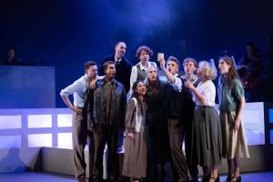 Willem & Frieda: Lars Mak in het midden als Gerrit van der Veen met een vals persoonsbewijs en het ensemble (foto Liza Kollau)