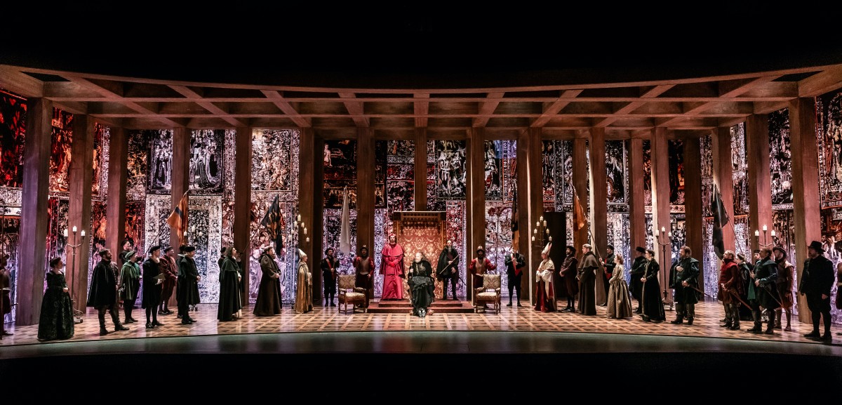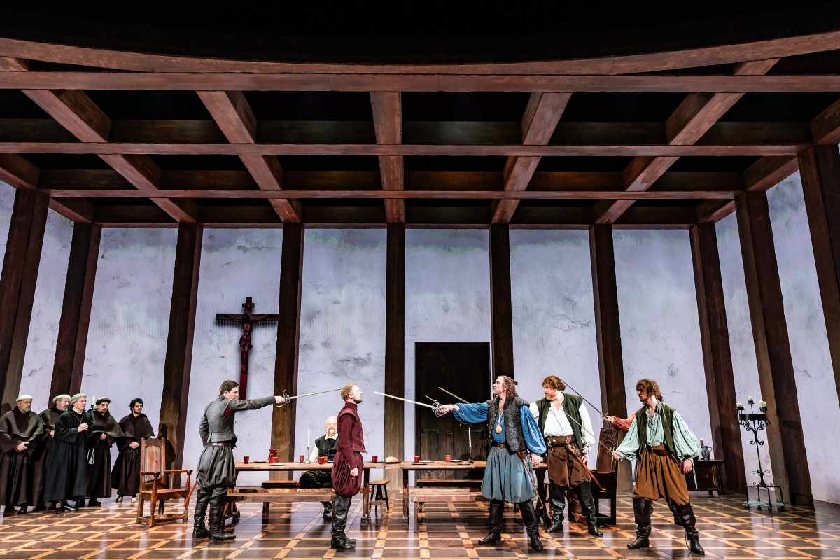 Scènefoto met in het midden Joris Willem Smit als Willem van Oranje en Matteo van der Grijn als Lumey (foto Danny Kaan)